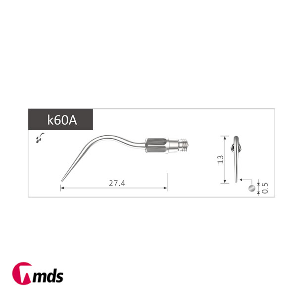 - Lange, gerade Spitze mit abgerundeten Arbeitsflächen zur schonenden Reinigung parodontaler Taschen.